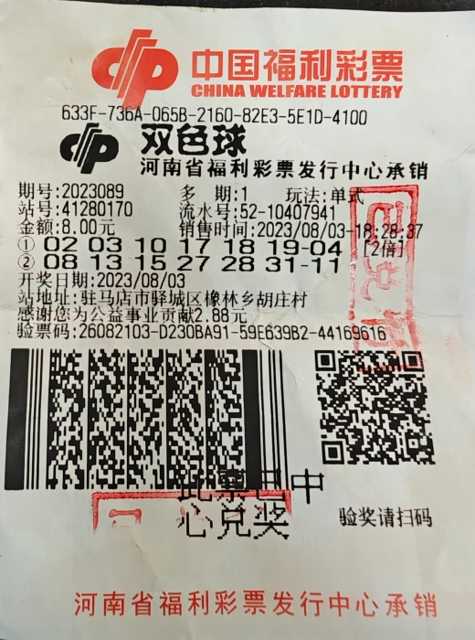 福彩双色球,八月迎好运。8月3日晚,福彩双色球第2023089期开出一等奖18注,单注奖金577万元,其中河南购彩者幸运收获4注,分落驻马店2注、濮阳2注。