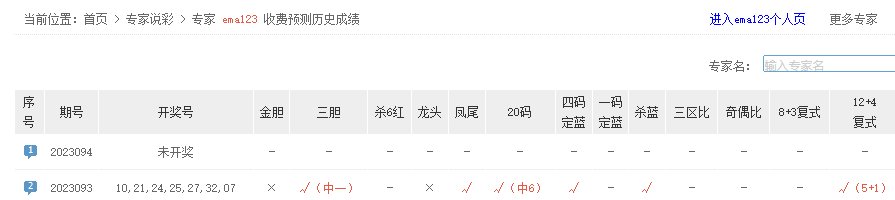 杀手君、李拽拽、彩灵通复式12+4中5+1;我为奖池狂、阳明王、长山赵子龙、Dixon、推彩手、小胖子看彩、zwz252、预测王、拔剑西来、彩研专精等专家中5红1蓝。