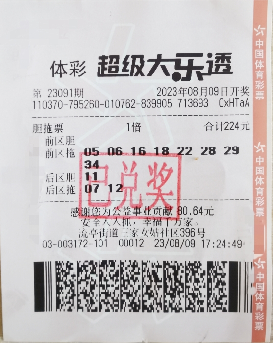 8月9日晚,体彩超级大乐透第23091期前区开出号码“06、16、18、28、29”,后区开出号码“07、11”。大乐透第23091期全国共开出7注一等奖,其中一注645万元基本投注一等奖花落青岛城阳区流亭街道王家女姑社区3703003172体彩投注站。