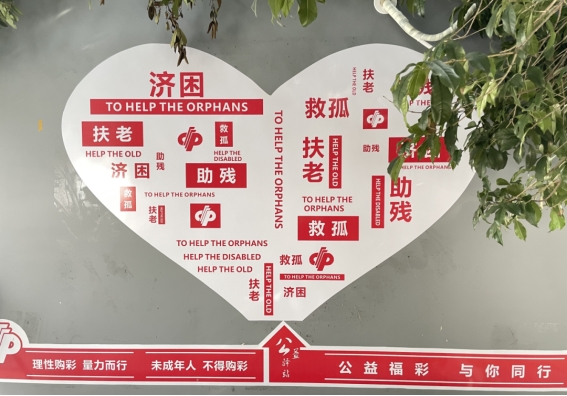 店外,“FUCHAO时光馆”“hello 长沙”等霓虹灯招牌与老街氛围融为一体,时尚新潮;店内,干净敞亮、公益元素凸显。两位年轻销售员笑意盈盈,服务周到。因社交媒体推荐,来老街游玩打卡的年轻人不时入店购彩。