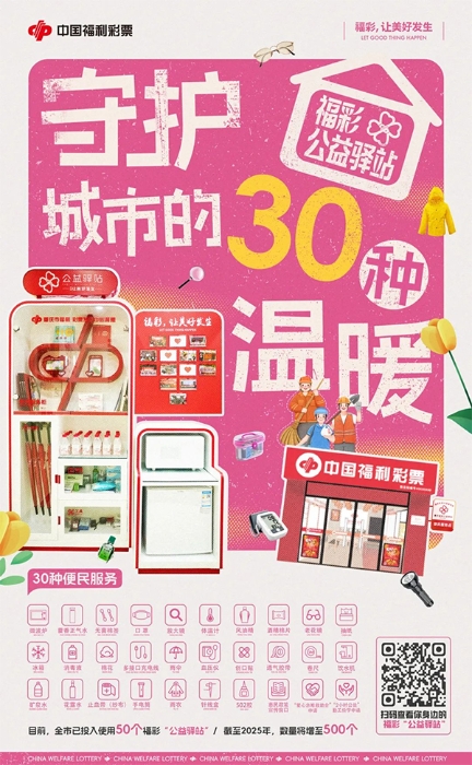 据了解,福彩“公益驿站”主要依托重庆福彩现有的优质路段销售网点布置公益设施。目前,全市已投入使用50个,预计截至2025年底,福彩“公益驿站”数量将增至500个。