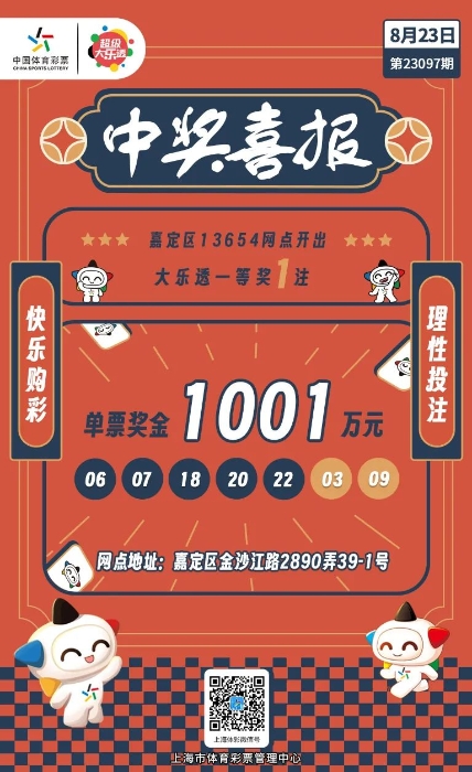 (图为中出大乐透第23097期一等奖的嘉定区13654网点)
