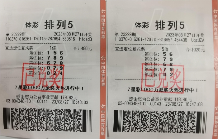 8月27日,排列5第23229期开出号码“6、7、8、9、0”,全国共爆出304注一等奖。青岛3703004348体彩投注站喜获其中6注一等奖,总奖金60万元。