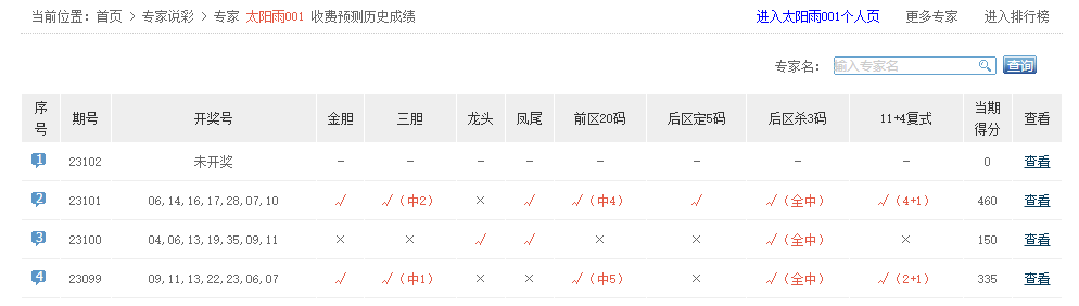 太阳雨001、定胆宝典、东方爱彩、小小迷、大数据看彩、决战头奖、专心研究、老雷评彩中4+2。