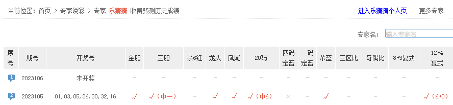 乐猜猜、大联盟12+4命中6+0;剑来等专家同中6红。