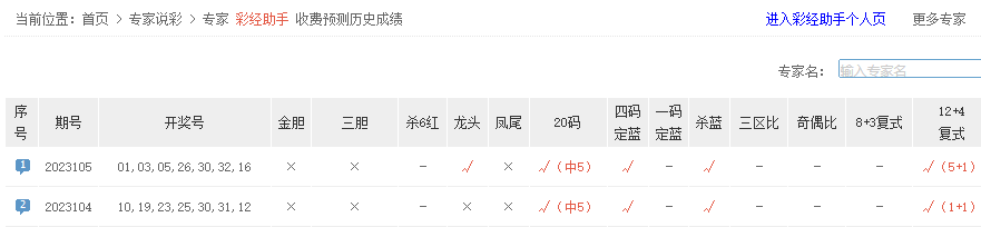 彩经助手12+4中5+1;大唐官府、数一数二中5+1。