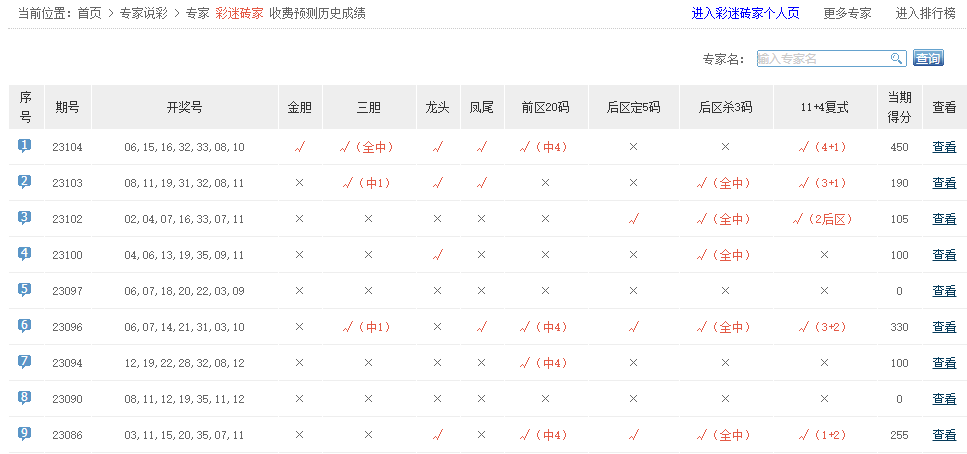 彩迷砖家、非常零距离、空万里、半瓶子、笑面佛、月朗天门、彩大胆、大奖领航、大众彩彩博弈、老彩民了、虎虎生胆中4+1。