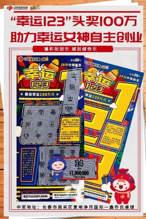 9月5日,长春市南关区复地净月国际一鑫乔氏桌球再传头奖捷报,幸运彩民李女士(化姓)运气爆棚刮中福彩刮刮乐“幸运123”大奖,喜中奖金100万元!
