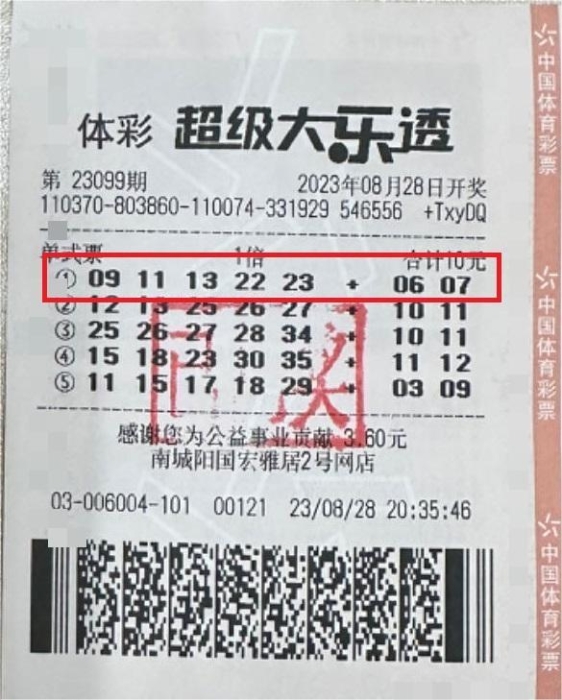 8月28日晚上,刘先生加班回家路过体彩投注站,想到周一是大乐透开奖日,他就到店里机选了一张10元的大乐透彩票。“我并不是每期都买,一般路过体彩站想起来了就会买一张。”刘先生说自己一直是抱着“有枣没枣打一杆”的心态买的彩票,因为他觉得这种小概率幸运事件发生在自己身上的机率太低了。所以买完彩票后,刘先生也没有特意关注开奖,还是每天该干什么干什么。刘先生不知道的是,当天晚上,他购买的这张10元彩票就中得了大奖。当晚,体彩超级大乐透第23099期前区开出号码“09、11、13、22、23”,后区开出号码“06、07”,全国共开出17注一等奖,刘先生购买的这张彩票幸运地命中了其中1注一等奖,奖金6065668元。直到一周多之后,刘先生再次到彩票站购买彩票时,才发现中了大奖,他赶紧请假到体彩中心领奖。领奖后,刘先生开心地和工作人员分享他的计划:“我准备先把房子贷款还上,再给孩子存一笔教育基金,然后二次创业。这回轻装上阵,加上之前积累的经验,我相信这次一定能成功!”