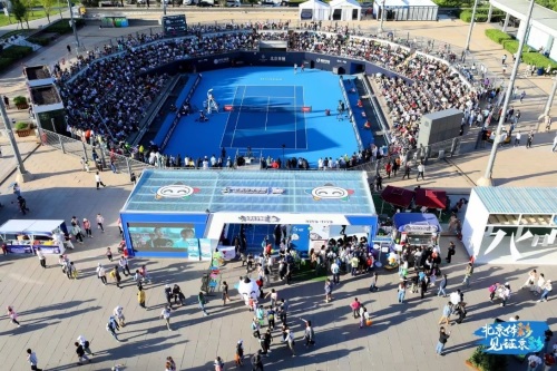 9月26日,2023中国网球公开赛拉开帷幕,作为赛事的市场推广合作伙伴,北京体彩盛装亮相国家网球中心钻石球场北广场,以“北京体彩 见证京彩”为主题搭建沉浸式体验区供观众观摩体验,用体彩的方式为赛事加油助威,直到10月8日赛事结束。