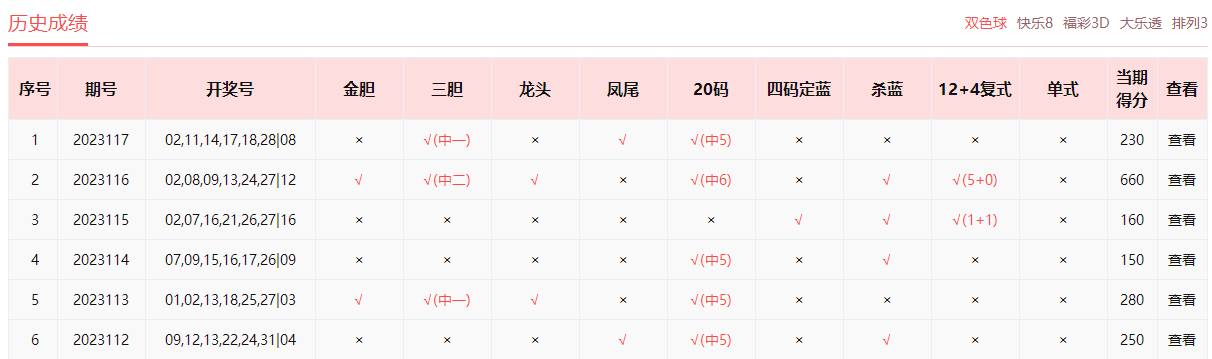 老张看彩、凤雏测号、彩财猜彩、魏一笑、白道长、想得好、封神子、聚财盆、何大师、山水乐彩、掘金人中5红。