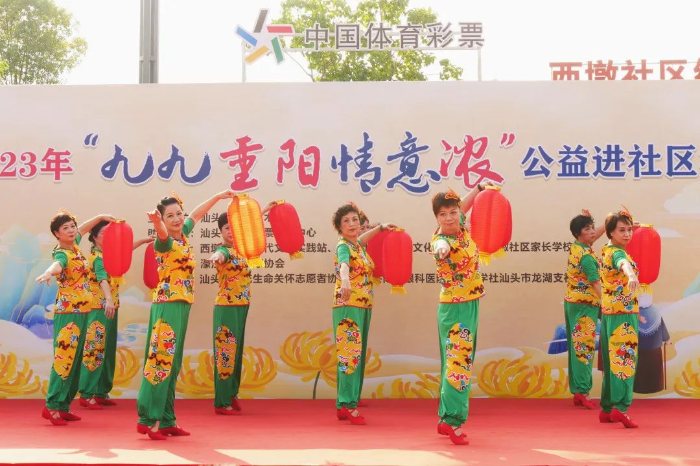 九九归一是重阳,步步登高人吉祥。为弘扬中华民族敬老、孝老、爱老的优良传统,10月15日,由汕头市金梦艺术团主办,汕头市体育彩票管理中心助力的中国体育彩票·2023年“九九重阳情意浓”公益进社区活动在汕头市西墩居委文化艺术广场举办。