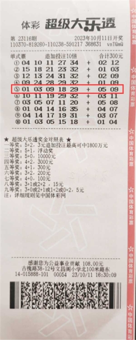 中奖者曹先生(化姓)在妻子的陪同下领走了奖金。中奖彩票是一张“一票10注”10倍追加票,全部号码都是通过机选产生,其中第5注与当期中奖号码仅在后区有一号之差,该票共中得追加二等奖10注、八等奖10注、九等奖10注,奖金总额68.63万元。曹先生表示:“我买大乐透一直喜欢机选号码,而且一定要追加和倍投,有时候买两三注,偶尔买一张‘一票10注’。开奖当晚,我看到号码之后心里有点遗憾,后区开出的04,我买的是05,距离大奖只有一步之遥啊!”曹先生的妻子则心态比较平和:“我觉得能中10注二等奖已经非常走运了,要是真中个亿万大奖,我们平静的生活肯定会被打乱。平常我们家也不缺钱,存着这笔奖金以备不时之需不挺好吗?”