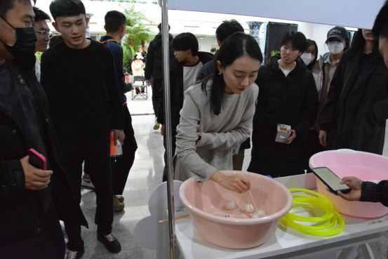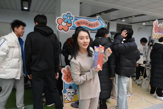 游戏区设有“好彩圈圈乐”和“好彩幸运池”两个有趣的互动游戏,小小的互动游戏,激起了沈体学生们的运动热情,不少学生结伴前来挑战,在一次次的加油声中,不断地刷新游戏记录,大三的刘同学以最快的时间完成两项挑战,赢得了全场的喝彩。