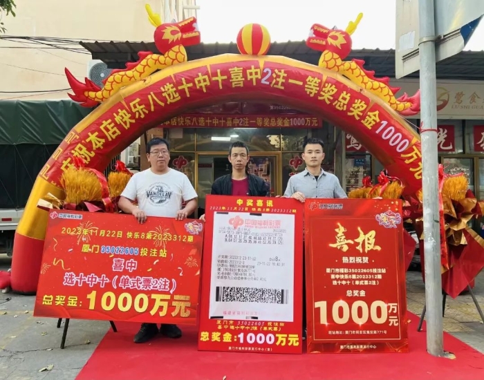 11月22日晚,福彩快乐8游戏第2023312期开奖,全国中出2注选十中十,单注奖金500万元。这2注大奖都被福建购彩者斩获,而且均花落厦门市同安区集安路771号的福彩35022605投注站,中奖彩票是一张2倍投注的单式票,喜获总奖金1000万元。这是厦门购彩者收获的首个快乐8游戏千万大奖!