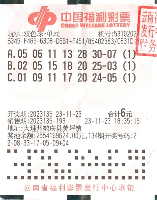 刘女士中出的这注双色球头奖出自大理州鹤庆县黄坪镇53102024号销售网点,中奖彩票是一张6元单式票,中得奖金566万多元。