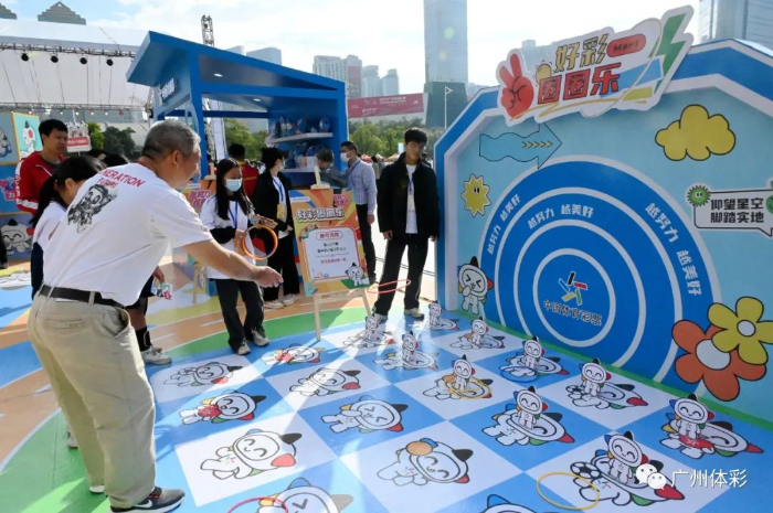 在“好彩圈圈乐”区域,可爱的体彩吉祥物乐小星成为主角,套圈小游戏唤起了大家的童年记忆,寓意乐小星代表体彩,希望能够通过游戏带给大家欢乐。