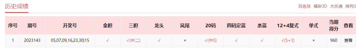 双色球2023143期开奖,开奖号05 07 09 16 23 30+ 15【最新推荐访问http://www.cmzj.net查看】