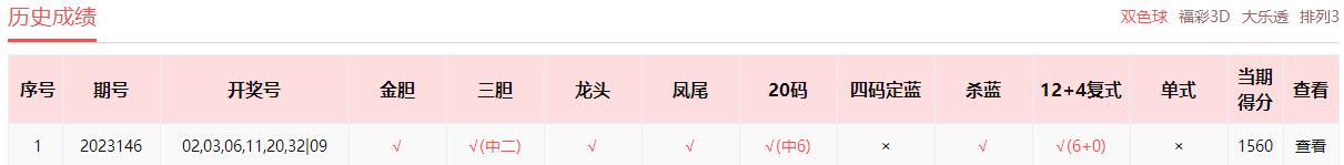双色球2023146期开奖,开奖号02 03 06 11 20 32 +09【最新推荐访问http://www.cmzj.net查看】