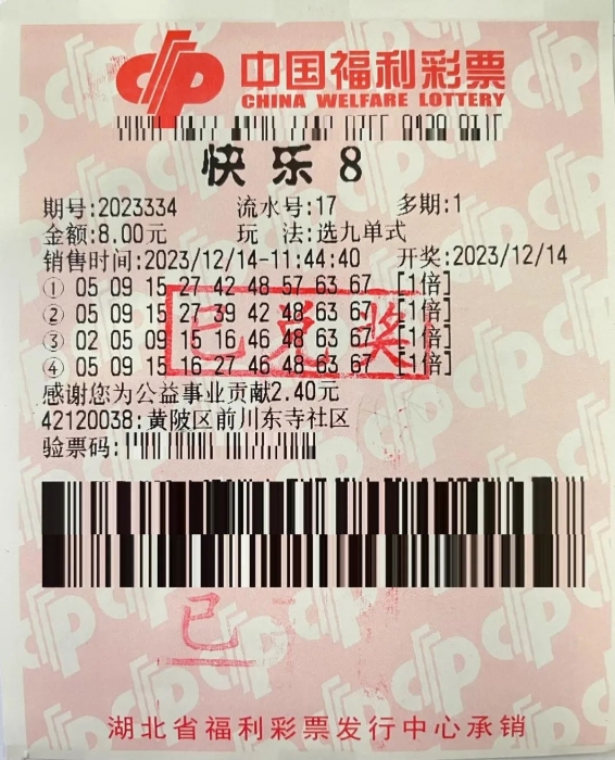 12月14日晚,快乐8游戏第2023334期开奖,武汉市黄陂区42120038号站一彩友喜中快乐8选九中九头奖,奖金30万元。