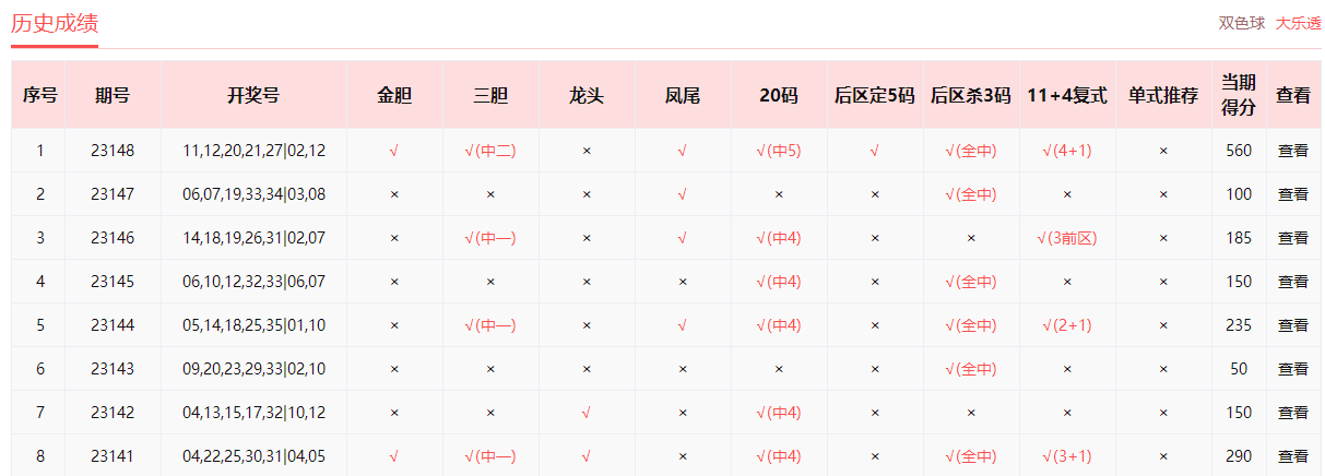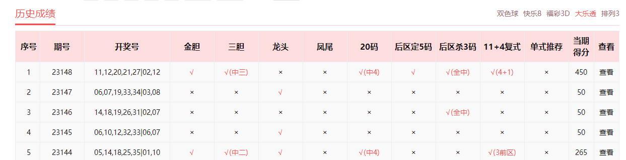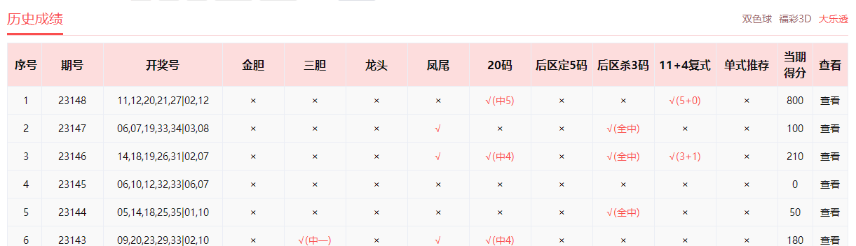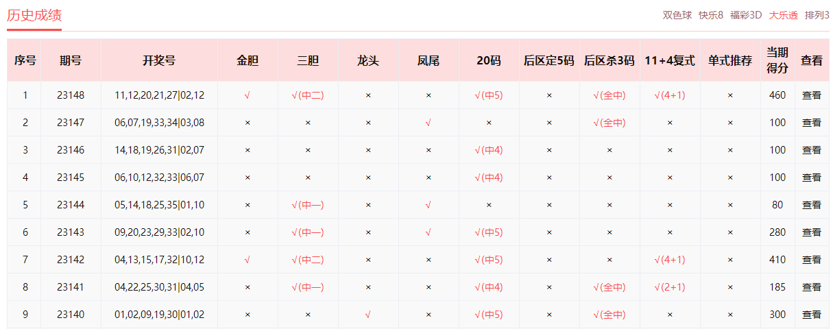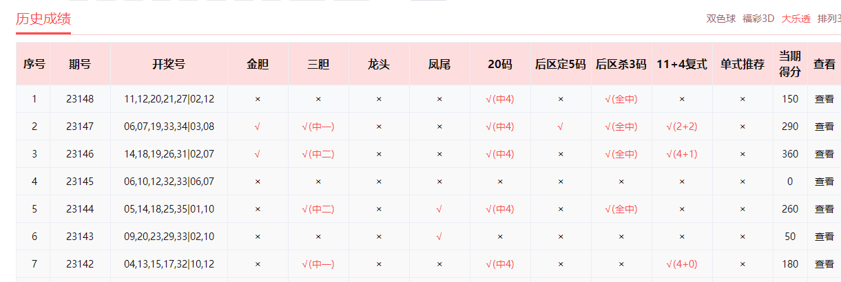 乐小星、非常零距离、雷达寻胆、wdg57859、预测小仙、浮萍人生、好运双胆中4+1。