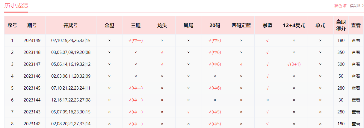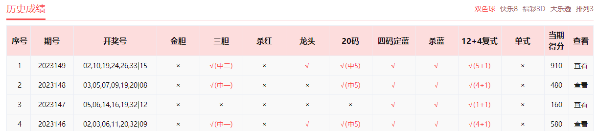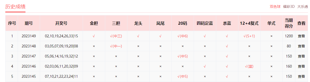 突击手159、幸运龙胆、鸿蒙中彩、资深老玩家、听听风语、水星限定、大大神通、欢庆吉祥、封锁一生、玄门斗彩、骐骥、老谢论彩、阳光分析、彩票龙、双色球技术员中5红。