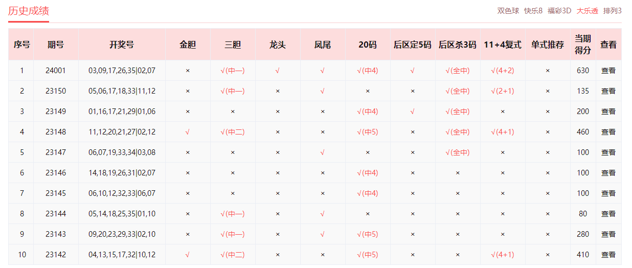 一篇方案、多维度预测。胆码、杀码、龙头、凤尾、大底,复式,单式推荐,全方位分析让选号更简单。