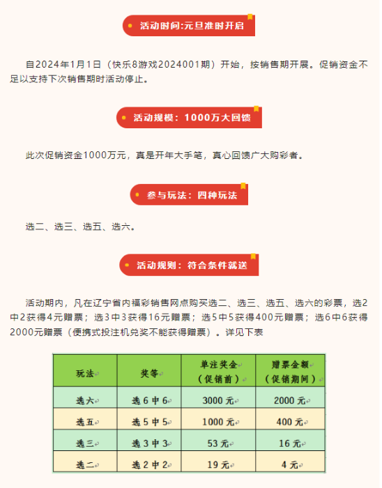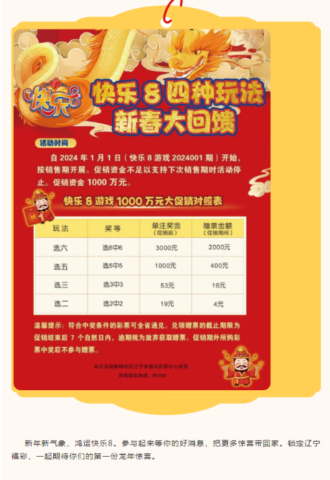 辽宁福彩“快乐8”第一阶段赠票促销元旦开启