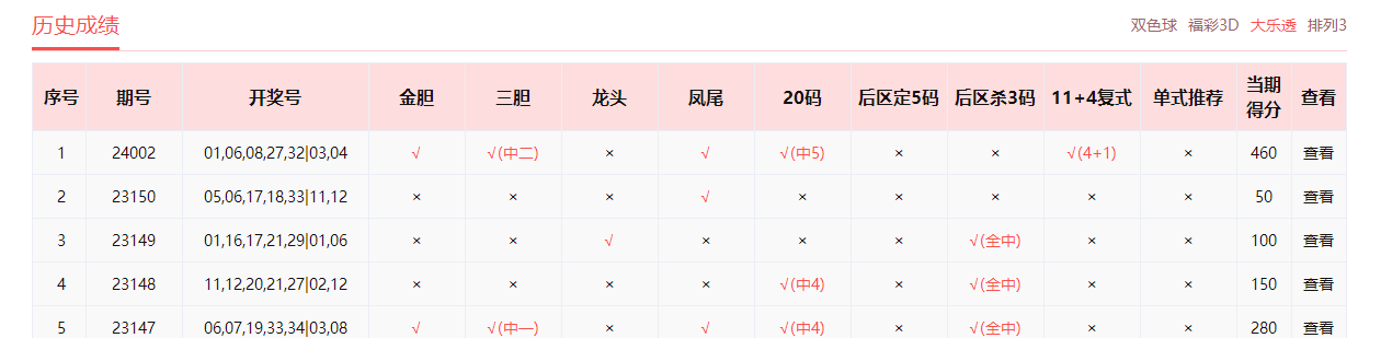 双彩唐老师、看彩精英、冰中之火、胆码天尊、超前算、特久九命中5+1。