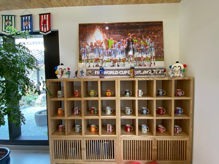 步入店内,“一家幸运好玩的店”这几个大字闪闪发光,随处可见足球明星的吊幔和海报,尤其是球王梅西带领阿根廷队夺冠的经典照片,更是能瞬间把人拉回到那个热血沸腾的瞬间,很难不让进店的游客主动打上一张足球彩票,切身感受一把源自体彩的绿茵躁动。感受过这令人肾上腺素激增的购彩体验后,店内还可以安静地坐下来,同三两好友相约品茗,在体彩乐小星吉祥物的陪伴下享受这轻松社交的一方“净土”。