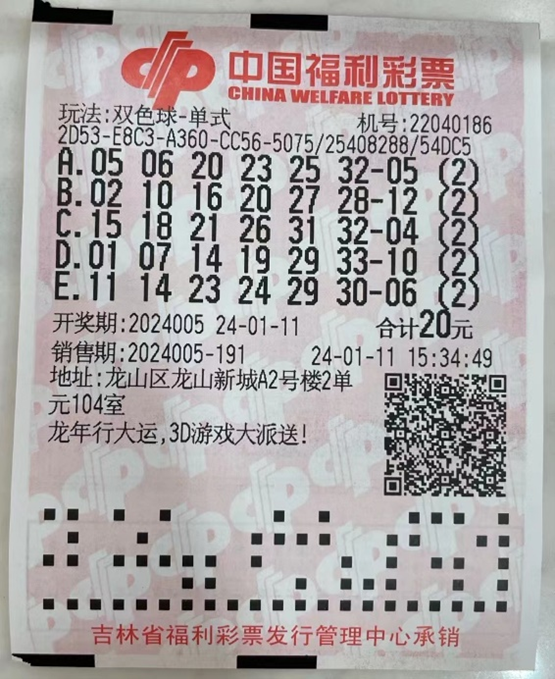 1月12日吉林省福彩中心迎来一位双色球二等奖的中奖彩民,该彩民中得的是双色球第2024005期二等奖2注,总中奖奖金667812元。