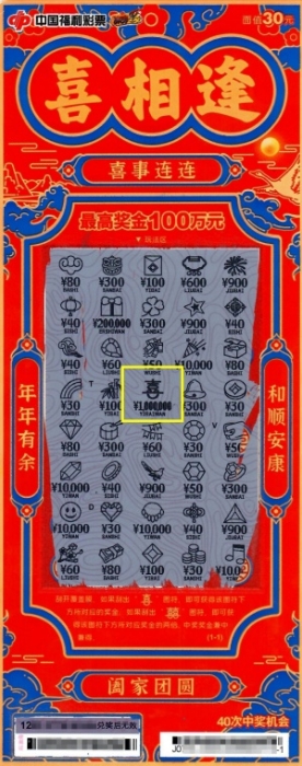马上快到春节了,总结过去一年,您的小目标实现了吗?您最大的收获是什么呢?江门市新会区一位彩民在春节前喜中大奖,收获“喜相逢”刮刮乐即开票100万元奖金!