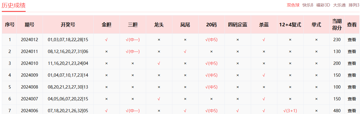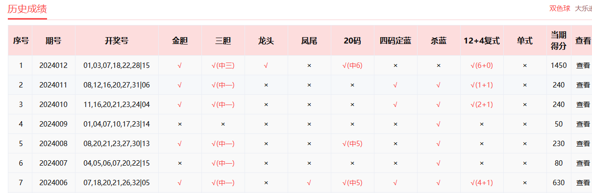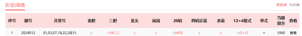 头福12+4中6+0;白百彩民、彩票达人杨哥、大数据看彩、华生说彩、剑雷、hjy1976、小彩民献爱心同中6红。