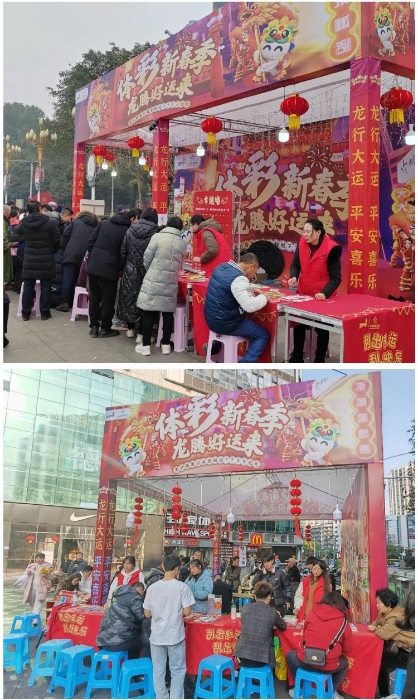 日前,重庆体彩在渝中、巴南、北碚、綦江、南川、梁平、奉节、忠县、巫山、巫溪、万州、开州、城口、云阳、涪陵等多个区县开展“体彩新春季 龙腾好运来”品牌落地推广活动,既为广大市民的假日添加了浓浓的欢乐气氛,又以多种形式充分展现了责任体彩的公益与公信。