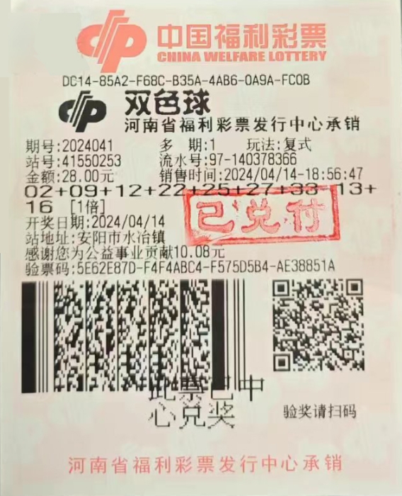 4月14日晚,双色球第2024041期开奖,当期一等奖出现“井喷”,全国共开出67注,单注奖金531万元,其中1注花落河南,再现大奖福地。