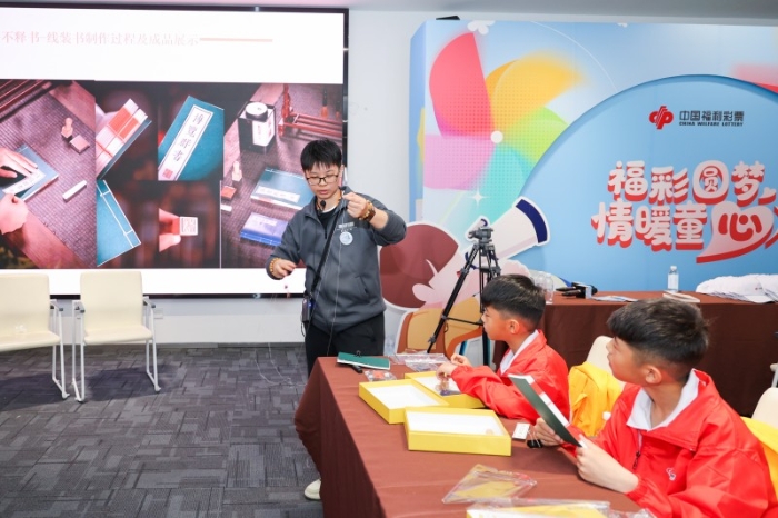 启动仪式上,天津福彩中心向来到现场的小朋友们捐赠了图书、学习用品等,还带领孩子们开展了读书推荐及古书制作体验活动。当天下午,参加活动的小朋友们开启了“福彩圆梦·情暖童心”公益活动的第一站,前往平津战役纪念馆,进行沉浸式参观学习。接下来的活动时间里,孩子们将走进天津市少年儿童活动中心体验杨柳青年画拓印技艺、参观天津博物馆了解天津历史文化等。通过游学、表演、汇演,让孩子们了解天津历史、感知津派文化、领略艺术魅力,让时代发展的流光溢彩浸润颗颗童心,让奋进勃发的种子向阳而生、逐梦星河。