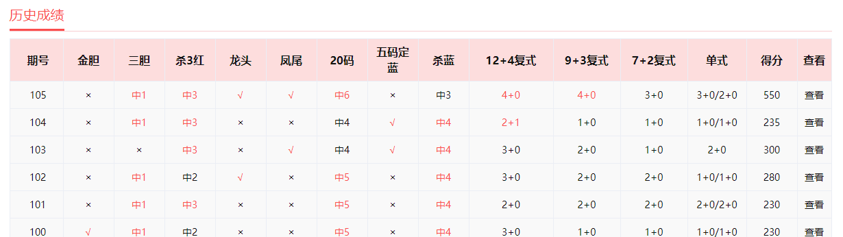红单第一人、身手不凡、乐透惊喜、彩虹海、高手的姐、小陌66中5+1。