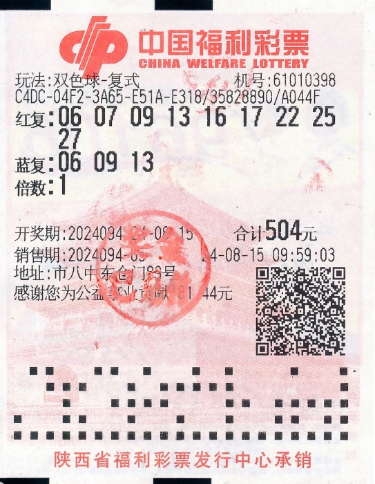 8月15日,双色球第2024046期开奖,一等奖井喷57注,单注500万元,陕西2注,其中一注出在白省侠合买团这张9+3复式自选票上。该票共中得一等奖1注、二等奖2注,加上209注固定奖,收获总奖金508万元。