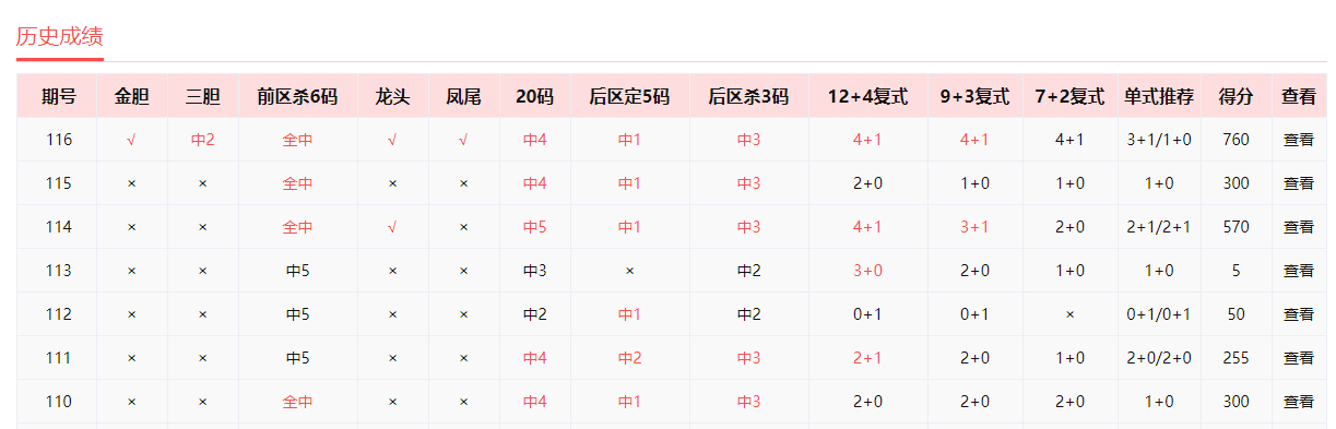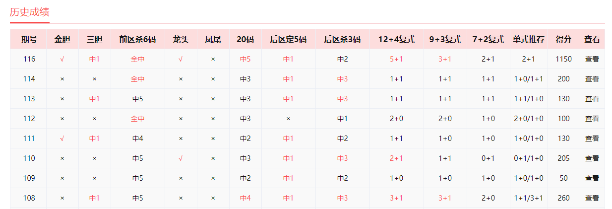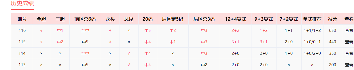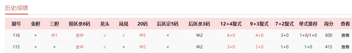通彩师、枯树、暴富小达人12+4中5+1;海陆空、辛丑虎中5+1。