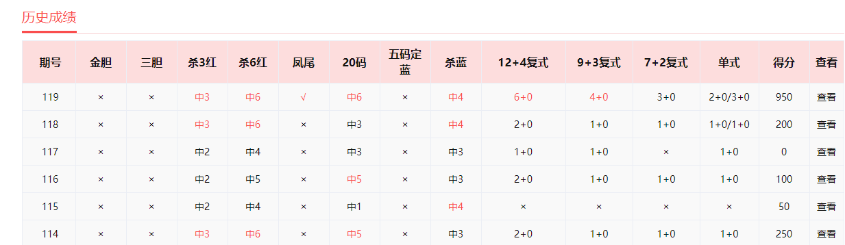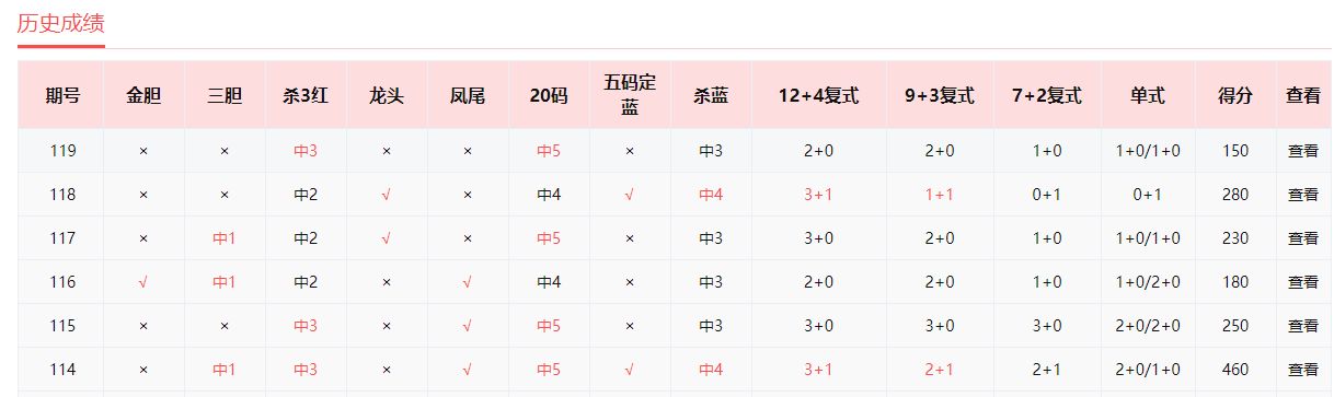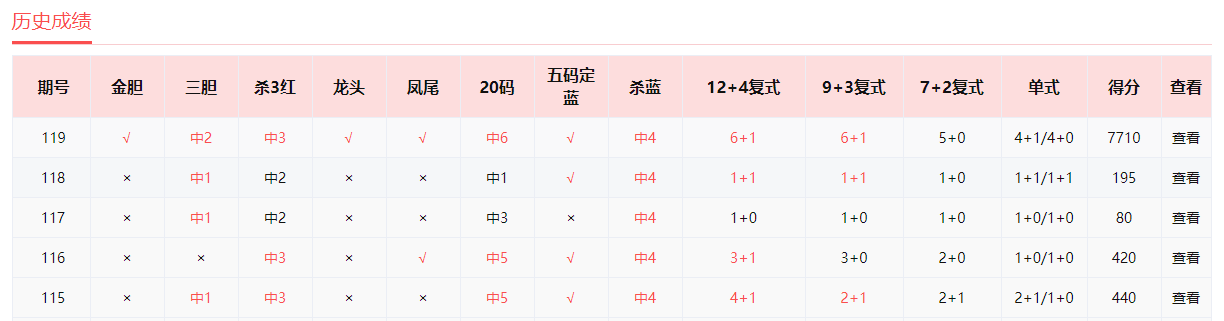 中彩红手、兄弟连、非常零距离、红单第一人、雷达寻胆、星星灯火、笑面佛、老行家、破晓晨星命中5+0。