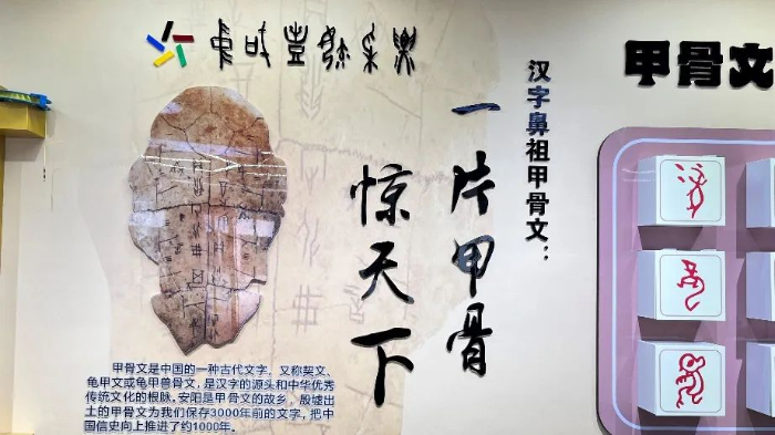 走进这家位于安阳文体中心的体彩店,仿佛踏入了一个融合古老文明与现代潮流的空间。门头"中国体育彩票"的招牌,用相对应的甲骨文字形做了注解;正对着门口的文化墙上,是那片画在历史课本里令全世界震惊的甲骨。