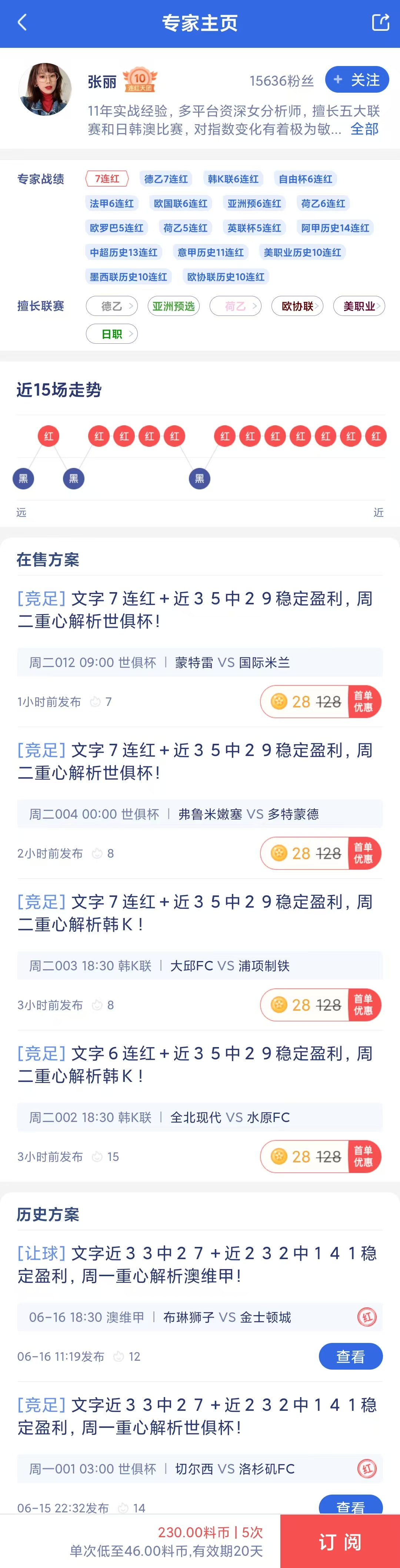 竞彩专家“张丽”保持高命中率,近期成功收获7连红!今日带来多场比赛分析,订阅更优惠,不要错过!