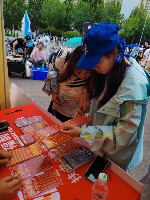 活动现场有福彩歌迷接驳点、即开票销售区、网红打卡墙及应援彩妆区,深受歌迷朋友喜欢。即开票销售区围着体验购彩的歌迷,现场刮开彩票时的紧张期待,如同对偶像的炽热心意,每一次刮开都是专属仪式,将好运与对偶像的祝福交织,让追星之旅多了份浪漫与对好彩头的期待。彩票就这样巧妙融入年轻人的社交,从“公益担当”到“氛围担当”成为他们释放压力,增添生活乐趣的新选择。