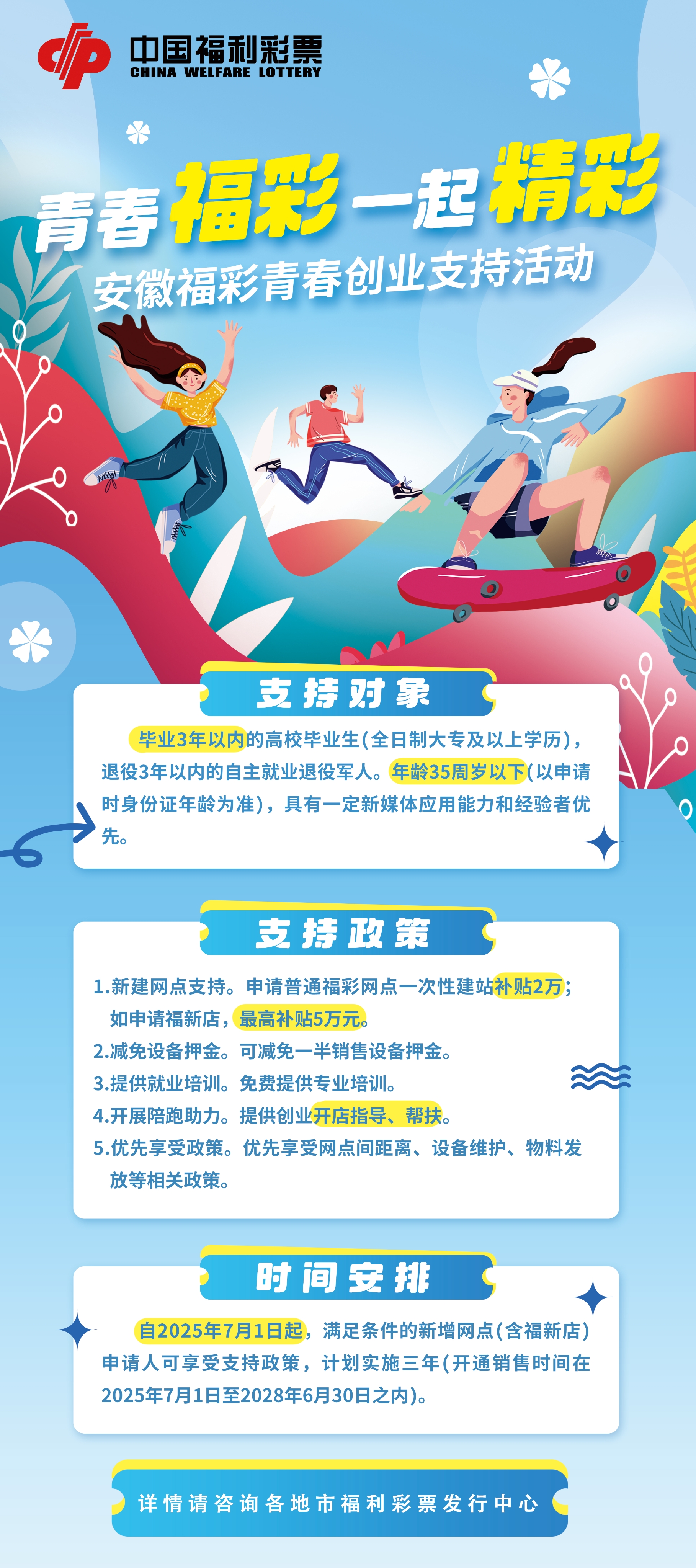 想开启属于自己的创业之路吗?想在追逐梦想的同时投身公益事业吗?安徽福彩为高校毕业生、退役军人等青年群体量身定制的「青春创业支持活动」正式启动!最高5万元建站补贴+全流程创业扶持,让你零压力开启创业路,还能顺便做公益!