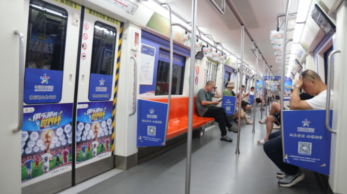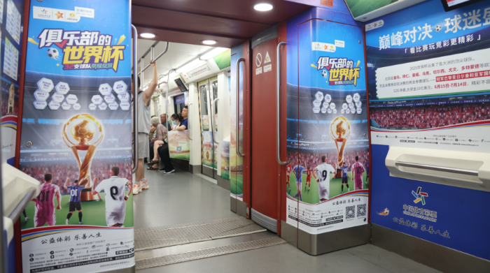 走进这辆专列车厢,迎面而来的世俱杯氛围便吸引众多乘客的关注,车厢化身迷你世俱杯赛场,炫酷的球队介绍、细致的赛程表、“激情世俱杯,为梦想而战”的标语跃然眼前,让每一位乘客仿佛置身于激情澎湃的足球殿堂。每一次停靠,都仿佛是通往世界之巅的站台,可爱俏皮的体彩吉祥物乐小星出现在列车各处,仿佛在邀请大家一起加入这场足球盛宴,与乘客们一同分享运动的快乐,随处可见的世俱杯海报还引发了乘客们对世俱杯竞猜与世俱杯决赛结果的讨论——“这届比赛你买了吗,我买中了好几次呢!”“现在这支巴黎太厉害了,我看好他们夺冠。”“这届世俱杯竞猜我就错了一场,就是巴黎小组赛输的那场,我现在不相信巴黎”……在这个炎热的夏天,车厢内欢乐的氛围冲淡了人们对于酷暑天气的烦躁,通过体彩+地铁的纽带,将不同人生阅历但有相同爱好的人群聚集在这片足球+公益的空间中,让市民在感受足球魅力的同时,更深入地了解体育彩票。