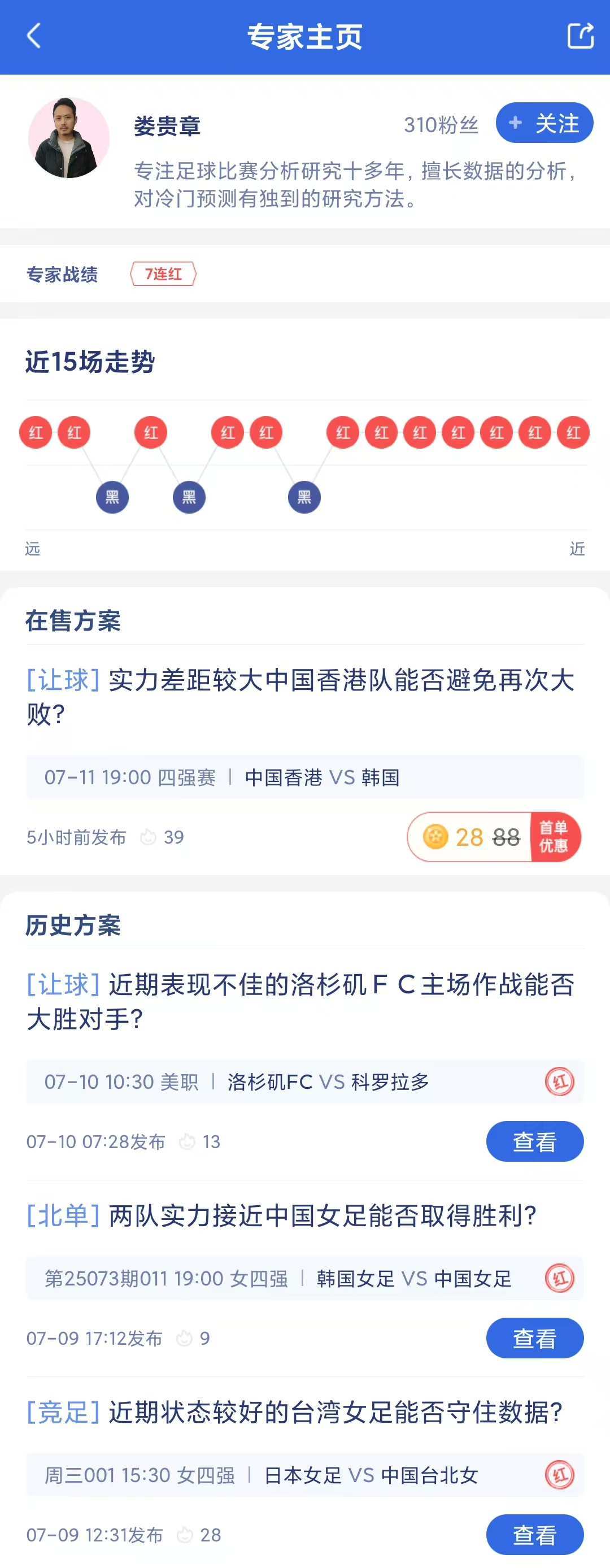 2串1计划专家【周慧聪】目前连红19期,近3期均在第一阶段就完成计划!今日最新计划已更新,20连红就在眼前!