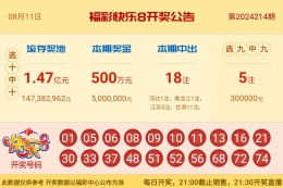 恭喜昨日福建中出选十头奖1注,奖池金额2.26亿