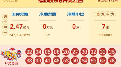 恭喜昨日福建中出选十头奖1注,奖池金额1.6亿