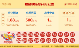 恭喜昨日福建中出选十头奖1注,奖池金额2.62亿