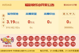 昨日选九、选十头奖均未中出,奖池金额2.22亿
